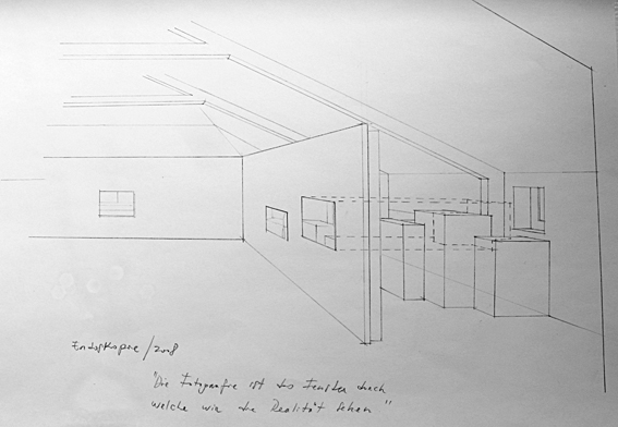 Wir sind unter diesen Umständen fähig einen Raum zu kennen, bevor wir ihn in seinem Umfang erlebt haben. Denn wir kennen die Grammatik und die Logik, mit der er kreiert wurde. Wir sind gewissermaßen in die Lage versetzt durch Wände zu schauen, denn uns ist die mathematische Artikulation des Raums bekannt. [6]