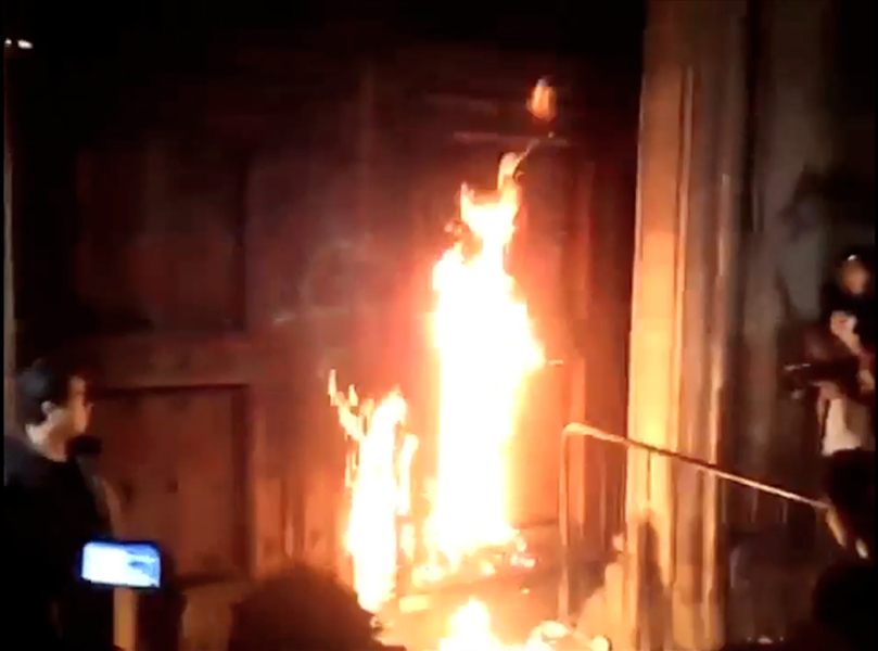 The various social and political levels of representation that can be detected in the physical constitution of a city reveal the structures of power and order to which society is subjected. Cultural expressions often reflect these structures on a superficial level. On November 8, 2014, a group of anarchists among the demonstrators protesting Ayotzinapa spray painted anarchist slogans on the facade of the National Government Palace in Mexico City, and tried to burn down the gates while chanting: “Death to the government, long live anarchy.” On November 8, 1519, Hernán Cortés and Moctezuma II met at the same location for the first time. The National Government Palace was built with stones from the palace of Moctezuma II, after it was attacked, looted, and destroyed by Hernán Cortés.
