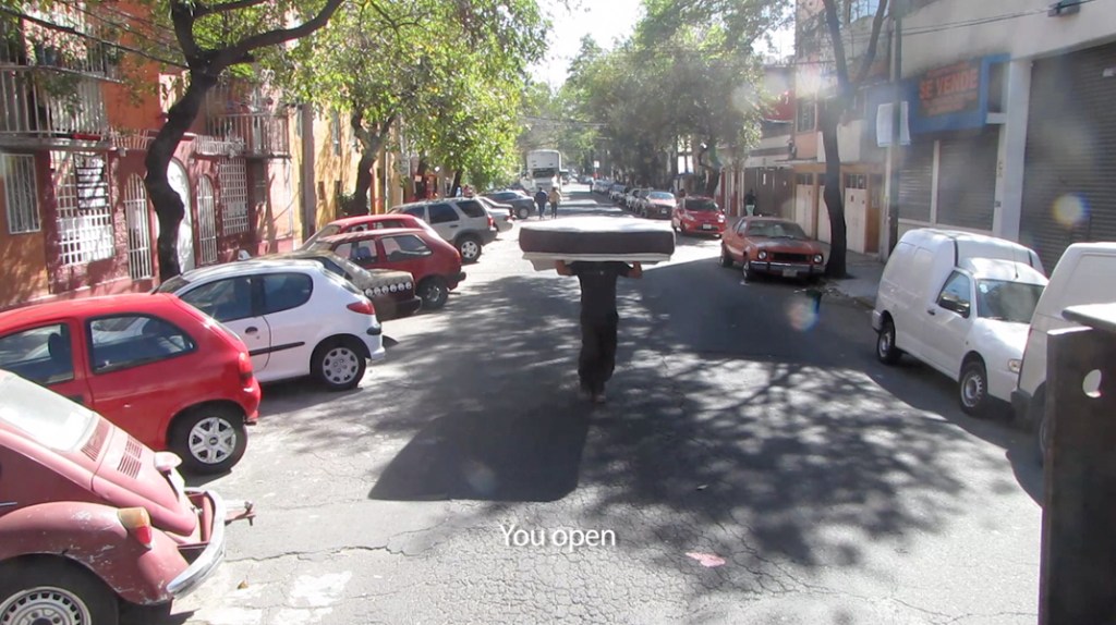 The project is divided into three chapters or “moments” that appropriate public space and its symbolic structural meaning. Various artistic strategies are employed to achieve this including placarding graphic works along the avenue of Colonia Sta Maria La Ribera, gaining closer access to urban situations via video documentation, or the intervention with megaphones from a wagon selling scrap metal in order to communicate a new message.